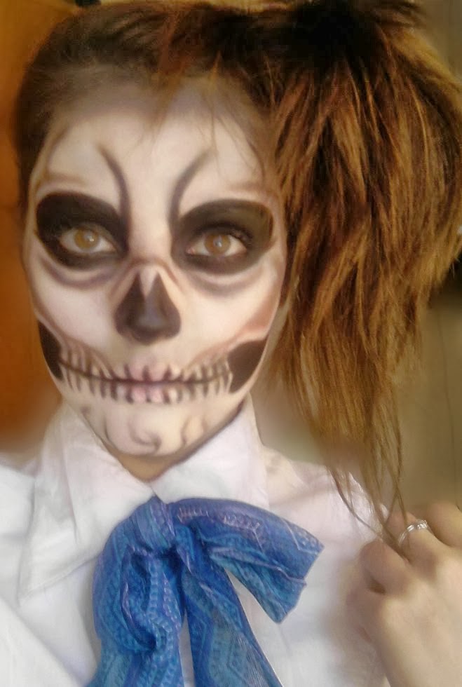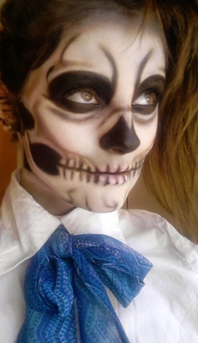 Sper ca nu v-ati speriat prea rau!:)) Parintii mei au avut un soc cand m-au vazut si chiar si eu ma uitam in oglinda si nu ma recunosteam,parca nu mai era nicio trasatura de-a mea.Nu mai spun ca noaptea,cand inchideam ochii,parca imi aparea imaginea mea din oglinda machiata asa! :)) Anyway,I had fun doing it!Sper sa va placa ;))